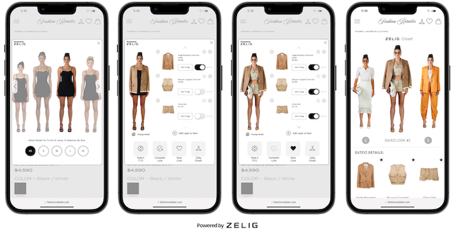 Zelig’s B2B2C platform combines AI, machine learning and computer vision to show shoppers images of how clothes, footwear and accessories would look on their body type.
