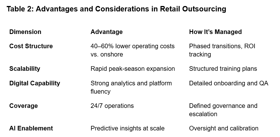 Table 2: Advantages and Considerations in Retail Outsourcing