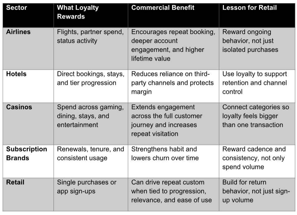 The least glamorous lesson is often the useful one, as strong loyalty is structural. It changes behaviour, carries a sense of progress, and removes friction at the moment the reward is supposed to land.